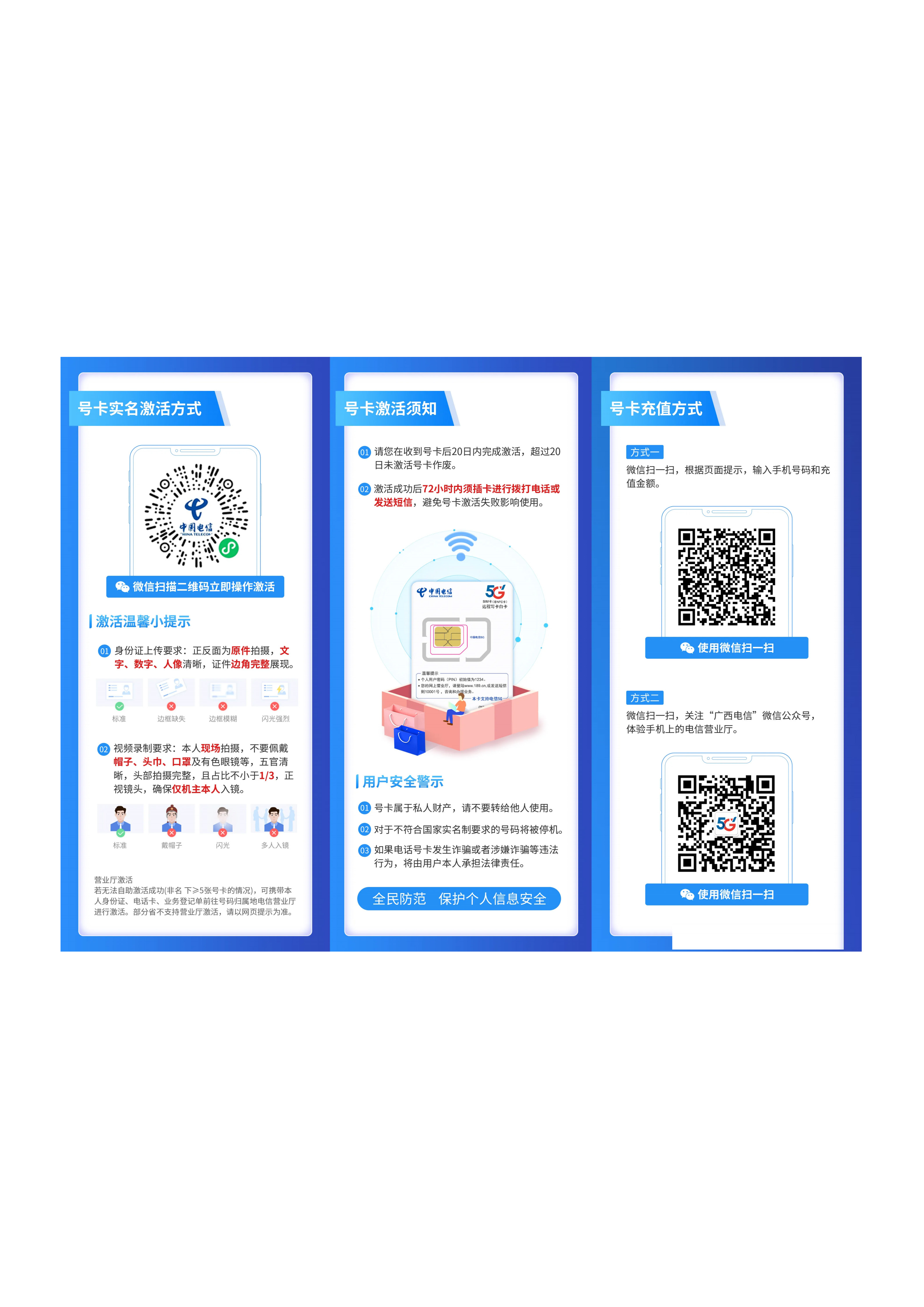 复机及注销方式:复机可通过http://gx.189.cn/s/AAAAVk 自助办理(不成功需到指定营业厅,外省走拆机);销户可通过中国电信APP-查询办理-全部服务-号卡服务-线上销户,或云视厅https://gx.189.cn/s/AAAavh 办理;实名补登需关注“广西电信”公众号发送“实名信息补登”操作